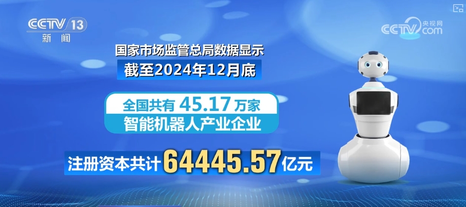 国度市场监管总局数据显示,截至2024年12月底,全国共有45。17万家智能机械人财产企业,注册本钱共计64445。57亿元。企业数量较2020岁尾增加206。73%,较2023岁尾增加19。39%,呈稳健上扬态势。