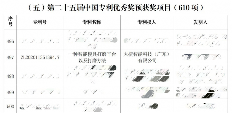 大捷智能科技(广东)无限公司(下文简称“大捷智能”)科技立异团队结合季华尝试室历经数年潜心研发,创制性地提出了一种集成了高精度传感器、智能算法节制、从动化施行机构于一体的智能模具打磨平台手艺,完全保守模具打磨依赖人工经验、效率低下、精度难以的痛点。该手艺大捷智能已申请发现专利《一种智能模具打磨平台及其方式》,并获得国度学问产权局授权。方才过去的第二十五届中国专利,大捷智能凭此发现专利斩获“中国专利优良”。